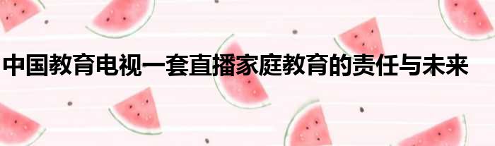 导读 大家好,今天小六子来为大家解答以下的问题,关于中国教育电视一套直播家庭教育的责任与未来这个很多人还不知道,现在让我们一起来看看吧!1