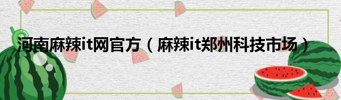 河南麻辣it网官方(麻辣it郑州科技市场)