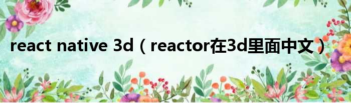 导读 大家好,今天小六子来为大家解答以下的问题,关于react native 3d,reactor在3d里面中文这个很多人还不知道,现在让我们一起来看看吧!1、