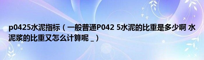 p0425水泥指标(一般普通P042 5水泥的比重是多少啊 水泥浆的比重又怎么计算呢 _)