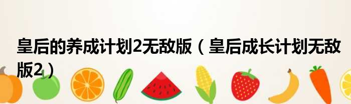 皇后的养成计划2无敌版(皇后成长计划无敌版2)