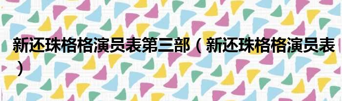 导读 大家好,今天小六子来为大家解答以下的问题,关于新还珠格格演员表第三部,新还珠格格演员表这个很多人还不知道,现在让我们一起来看看吧!1