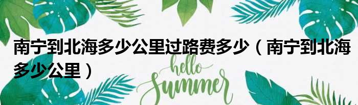 导读 大家好,今天小六子来为大家解答以下的问题,关于南宁到北海多少公里过路费多少,南宁到北海多少公里这个很多人还不知道,现在让我们一起来