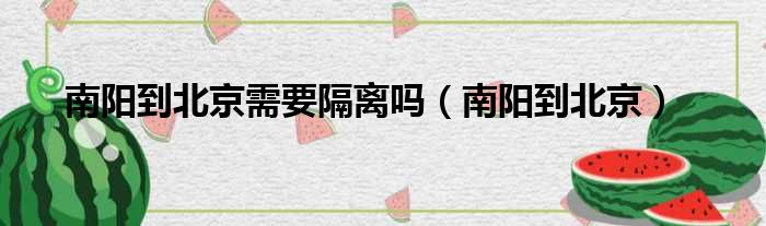南阳到北京需要隔离吗(南阳到北京)