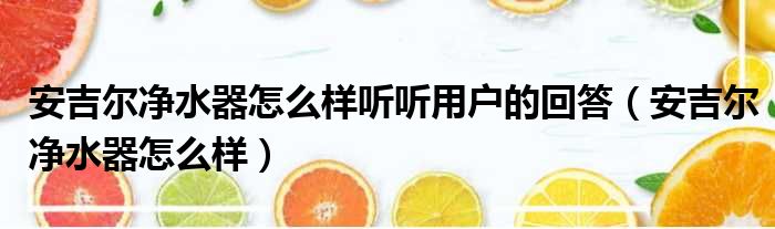 安吉尔净水器怎么样听听用户的回答(安吉尔净水器怎么样)