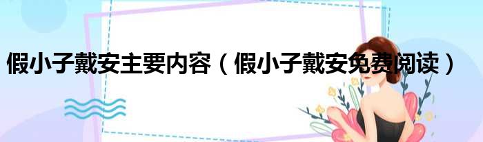 导读 大家好,今天小六子来为大家解答以下的问题,关于假小子戴安主要内容,假小子戴安免费阅读这个很多人还不知道,现在让我们一起来看看吧!1、