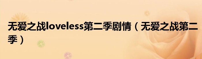 导读 大家好,今天小六子来为大家解答以下的问题,关于无爱之战loveless第二季剧情,无爱之战第二季这个很多人还不知道,现在让我们一起来看看吧