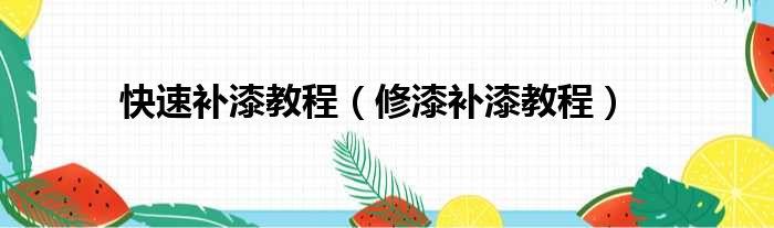 大家好,啊来为大家解答以上的问题。快速补漆教程,修漆补漆教程这个很多人还不知道,现在让我们一起来看看吧!