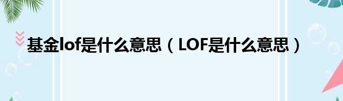 大家好,今天小六子来为大家解答以下的问题,关于基金lof是什么意思,LOF是什么意思这个很多人还不知道,现在让我们一起来看看吧!