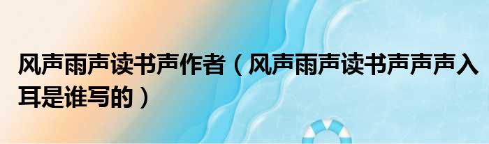 风声雨声读书声作者(风声雨声读书声声声入耳是谁写的)