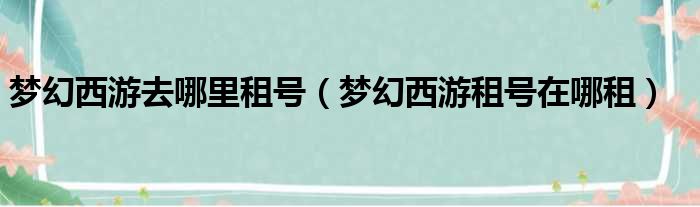 梦幻西游去哪里租号(梦幻西游租号在哪租)