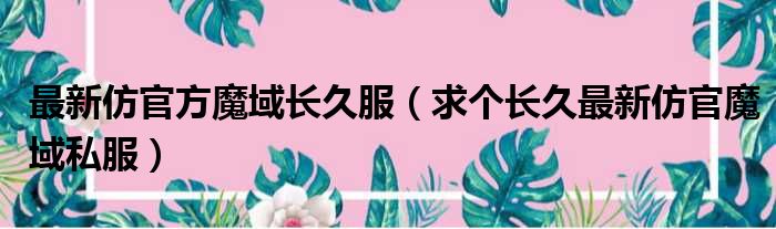 导读 大家好,今天小六子来为大家解答以下的问题,关于最新仿官方魔域长久服,求个长久最新仿官魔域私服这个很多人还不知道,现在让我们一起来看