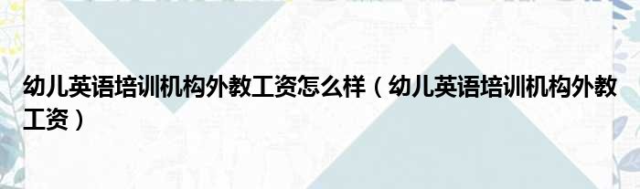 幼儿英语培训机构外教工资怎么样(幼儿英语培训机构外教工资)