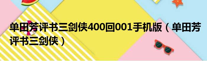 导读 大家好,今天小六子来为大家解答以下的问题,关于单田芳评书三剑侠400回001手机版,单田芳评书三剑侠这个很多人还不知道,现在让我们一起来