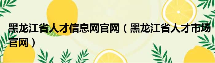 黑龙江省人才信息网官网(黑龙江省人才市场官网)