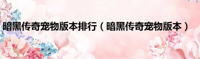 暗黑传奇宠物版本排行(暗黑传奇宠物版本)