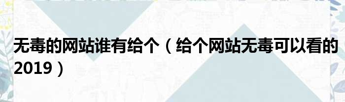 无毒的网站谁有给个(给个网站无毒可以看的2019)