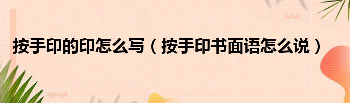 导读 大家好,今天小六子来为大家解答以下的问题,关于按手印的印怎么写,按手印书面语怎么说这个很多人还不知道,现在让我们一起来看看吧!1、按