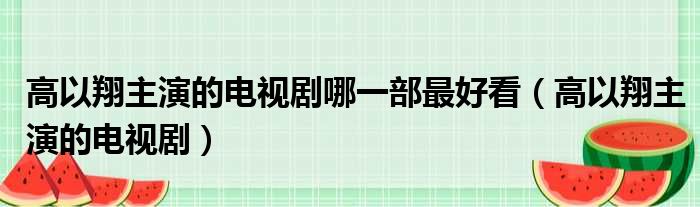 高以翔主演的电视剧哪一部最好看(高以翔主演的电视剧)