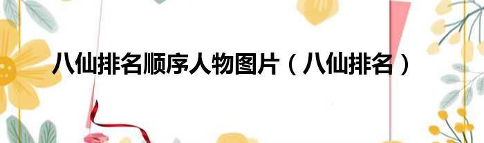 导读 大家好,今天小六子来为大家解答以下的问题,关于八仙排名顺序人物图片,八仙排名这个很多人还不知道,现在让我们一起来看看吧!1、彩八仙: