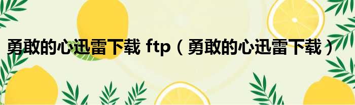 导读 大家好,今天小六子来为大家解答以下的问题,关于勇敢的心迅雷下载 ftp,勇敢的心迅雷下载这个很多人还不知道,现在让我们一起来看看吧!1