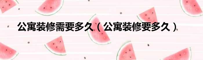公寓装修要2~3个月左右,公寓房的安装完成时间,跟需安装风格及安装工人施工进度等因素有关联,主要操作流程是:一、主体拆改约2天左右;二、水电改造约5天到10天;三、泥瓦工程约10天左右;四、木工工程约1天到30天;五、油漆工程约10天左右;六、安装收尾约10天左右。
