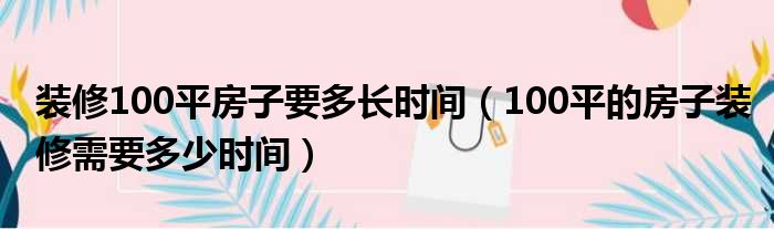 装修100平房子要多长时间(100平的房子装修需要多少时间)