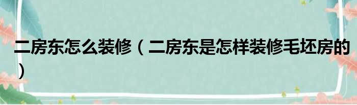 二房东怎么装修(二房东是怎样装修毛坯房的)