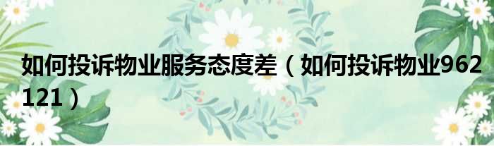 如何投诉物业服务态度差(如何投诉物业962121)