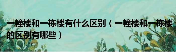 一幢楼和一栋楼有什么区别(一幢楼和一栋楼的区别有哪些)