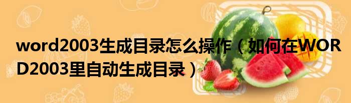 word2003生成目录怎么操作(如何在WORD2003里自动生成目录)