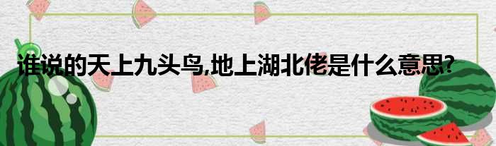 谁说的天上九头鸟,地上湖北佬是什么意思?