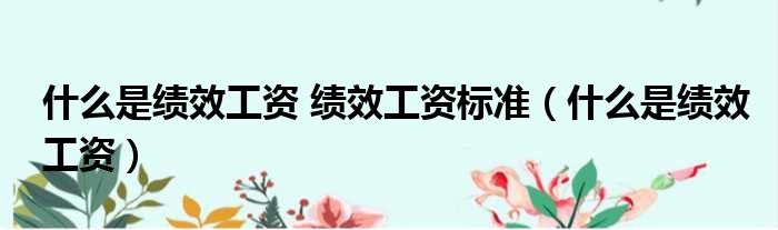 什么是绩效工资 绩效工资标准(什么是绩效工资)
