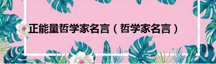 大家好,今天小六子来为大家解答以下的问题,关于正能量哲学家名言,哲学家名言这个很多人还不知道,现在让我们一起来看看吧!