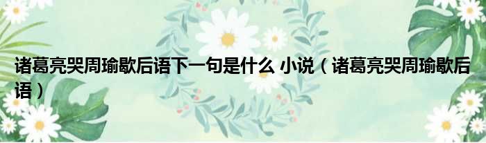 导读 大家好,今天小六子来为大家解答以下的问题,关于诸葛亮哭周瑜歇后语下一句是什么 小说,诸葛亮哭周瑜歇后语这个很多人还不知道,现在让我