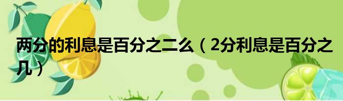导读 大家好,今天小六子来为大家解答以下的问题,关于两分的利息是百分之二么,2分利息是百分之几这个很多人还不知道,现在让我们一起来看看吧!