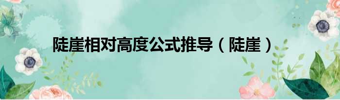 导读 大家好,今天小六子来为大家解答以下的问题,关于陡崖相对高度公式推导,陡崖这个很多人还不知道,现在让我们一起来看看吧!1、陡崖: 1 陡