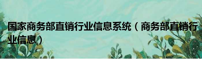 国家商务部直销行业信息系统(商务部直销行业信息)