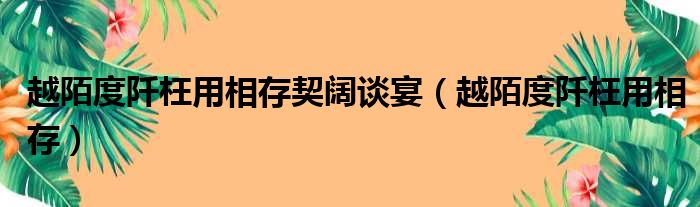 导读 大家好,今天小六子来为大家解答以下的问题,关于越陌度阡枉用相存契阔谈宴,越陌度阡枉用相存这个很多人还不知道,现在让我们一起来看看吧