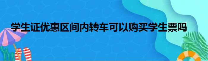 大家好,今天小六子来为大家解答以下的问题,关于学生证优惠区间内转车可以购买学生票吗这个很多人还不知道,现在让我们一起来看看吧!