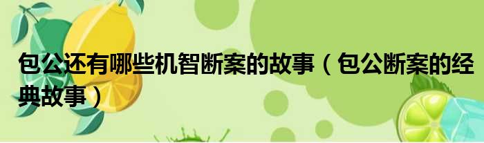 包公还有哪些机智断案的故事(包公断案的经典故事)