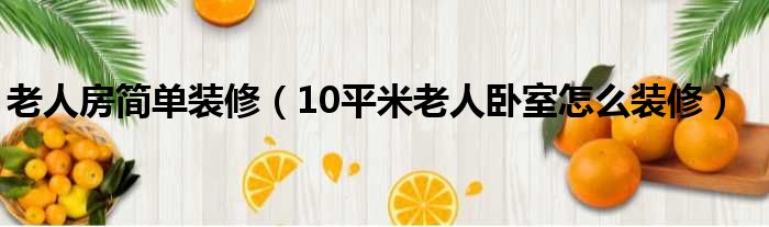 10平米老人卧室装修办法:1、简单布置,满足舒适即可;2、留下活动空间,考虑到老年人的出行方便;3、款式和颜色装修,符合老年人稳重的性格;4、家具选择,避免出现棱角;5、做置物架,方便收纳,避免杂乱。