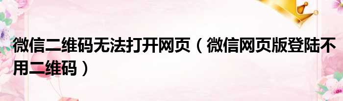 微信二维码无法打开网页(微信网页版登陆不用二维码)
