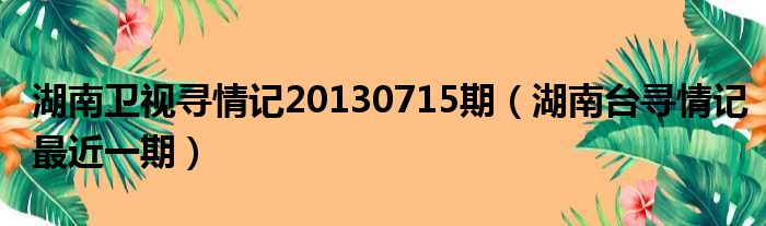 大家好,今天小六子来为大家解答以下的问题,关于湖南卫视寻情记20130715期,湖南台寻情记最近一期这个很多人还不知道,现在让我们一起来看看吧!