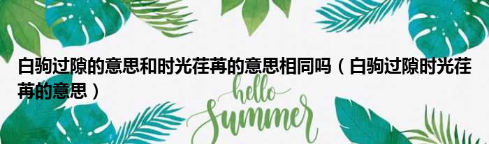 白驹过隙的意思和时光荏苒的意思相同吗(白驹过隙时光荏苒的意思)