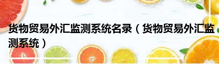 货物贸易外汇监测系统名录(货物贸易外汇监测系统)