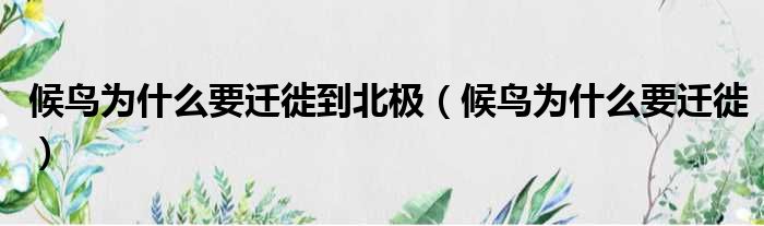 候鸟为什么要迁徙到北极(候鸟为什么要迁徙)