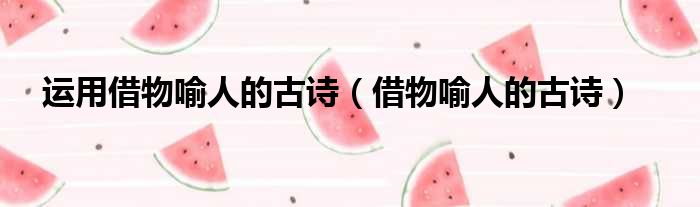 运用借物喻人的古诗(借物喻人的古诗)