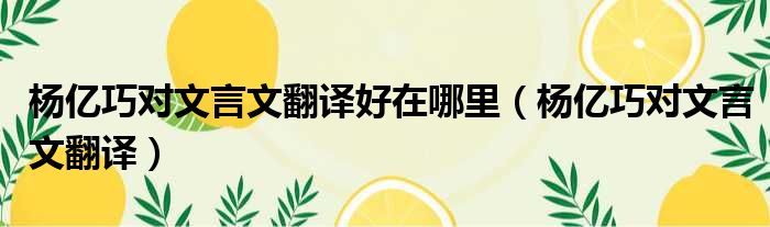 导读 大家好,今天小六子来为大家解答以下的问题,关于杨亿巧对文言文翻译好在哪里,杨亿巧对文言文翻译这个很多人还不知道,现在让我们一起来看