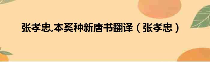 导读 大家好,今天小六子来为大家解答以下的问题,关于张孝忠,本奚种新唐书翻译,张孝忠这个很多人还不知道,现在让我们一起来看看吧!1、张孝忠